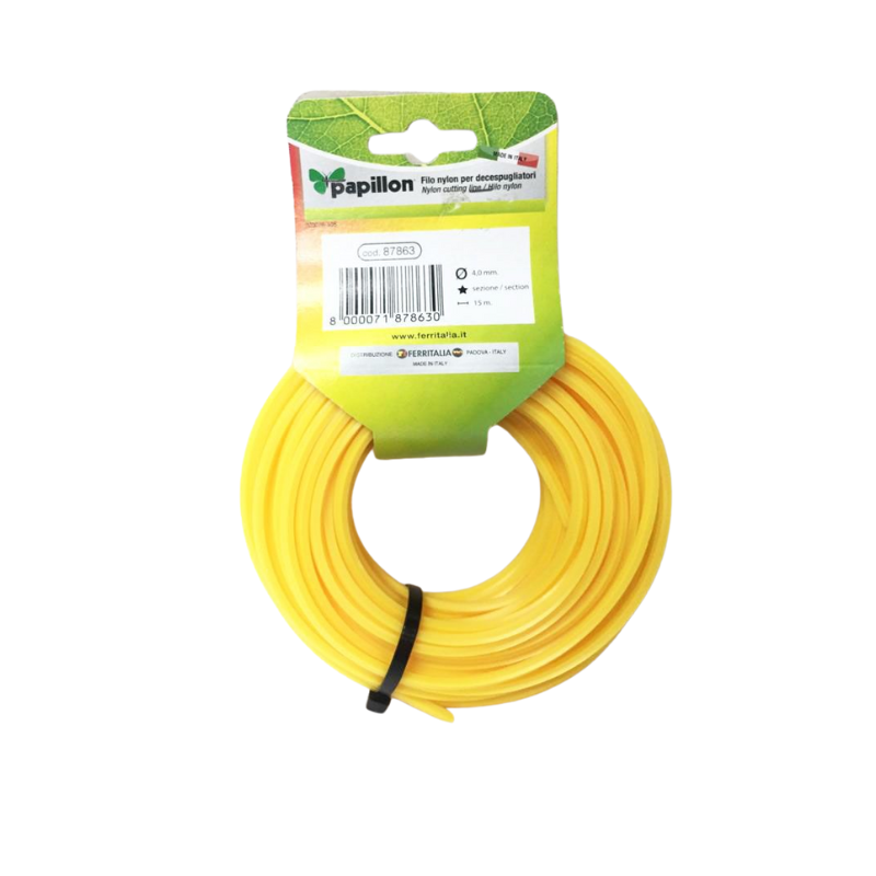 Filo in nylon per rasaerba e decespugliatori è il tipo professionale usato per grandi superfici e per erbacce robuste, rovi ecc., o per superfici contigue a marciappiedi, zoccoli in pietra ecc. dove il filo deve avere particolare robustezza.